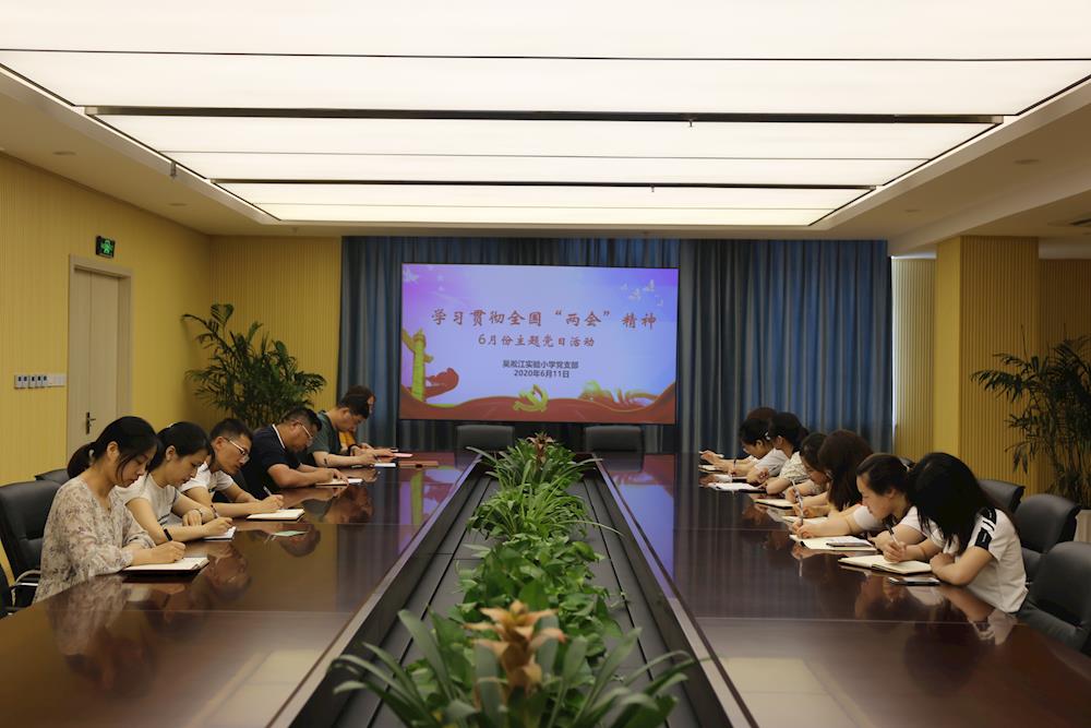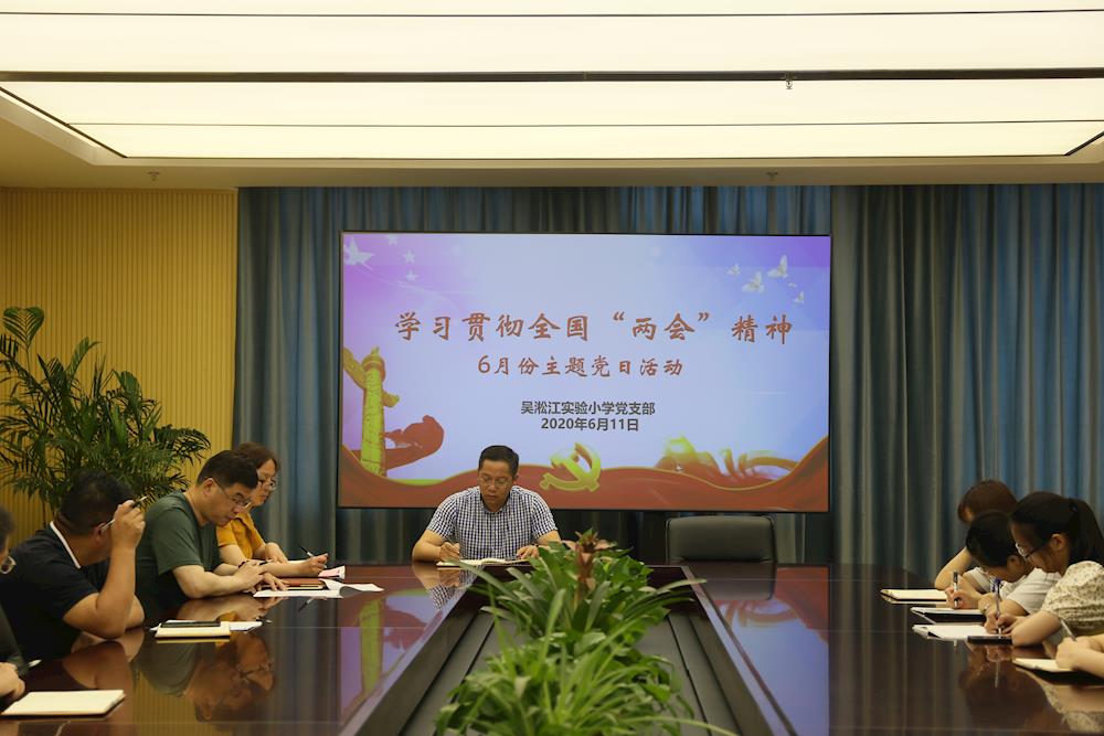 为了更好地学习贯彻全国“两会”精神,扎实有效地做好学校教育教学工作,践行新时代共产党员的先锋模范作用,2020年6月11日,吴淞江实验小学党支部开展了“学习贯彻全国‘两会’精神”主题党日活动。