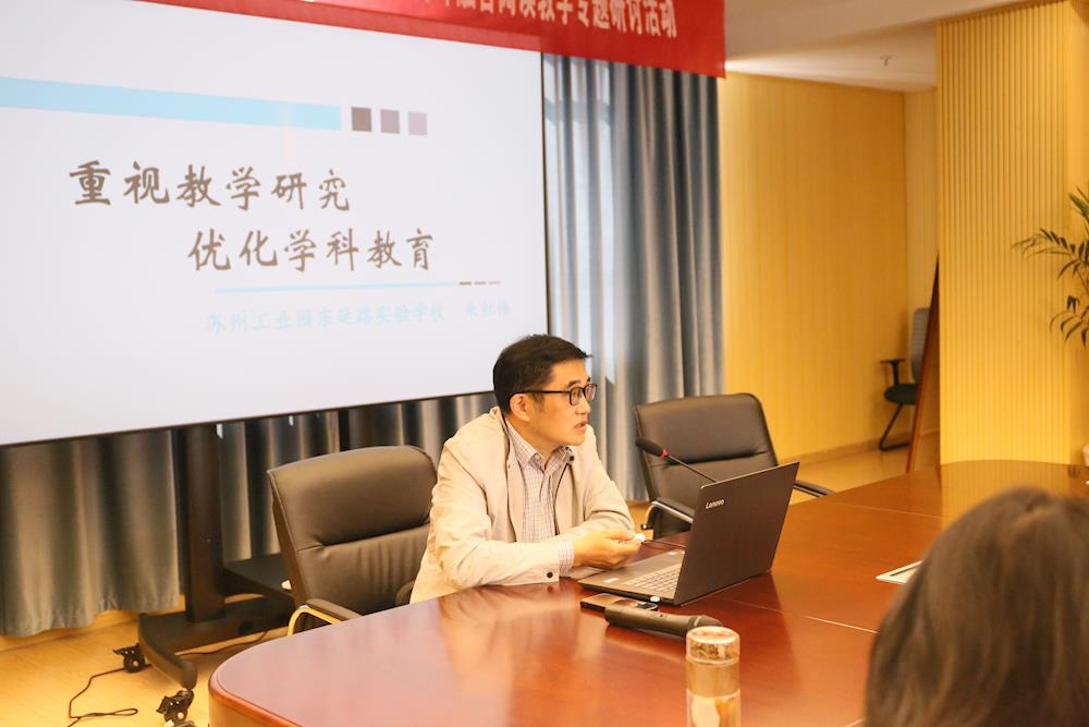 朱红伟校长进行了题为《重视教学研究,优化学科教育》的讲座。朱校的讲座深入浅出,从研究学生、研究素材、研究方法三个方面切入,向大家阐述了研究学生在教学活动中的重要性,引导老师们着眼学科,促进学生数学素养发展。与会教师们都认真地记录下了朱校长的智慧箴言,大家受益匪浅。