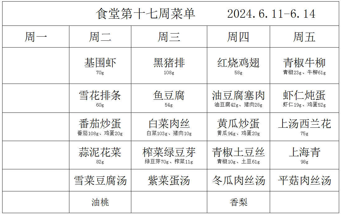 2023-2024学年度第二学期第十七周菜单
