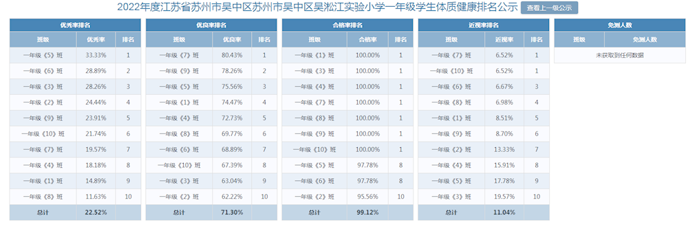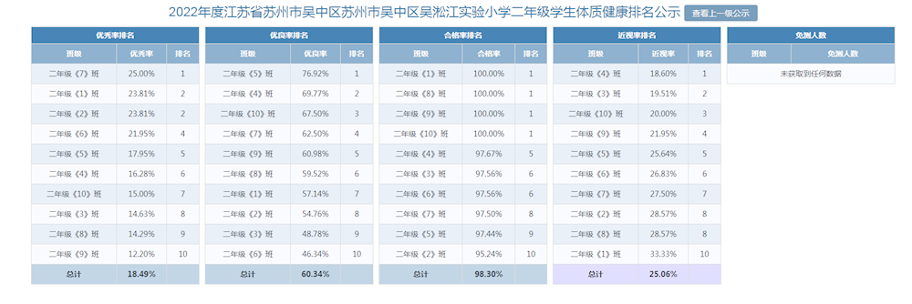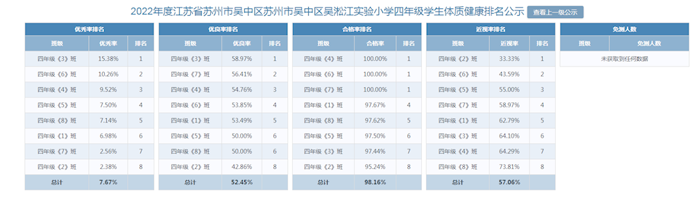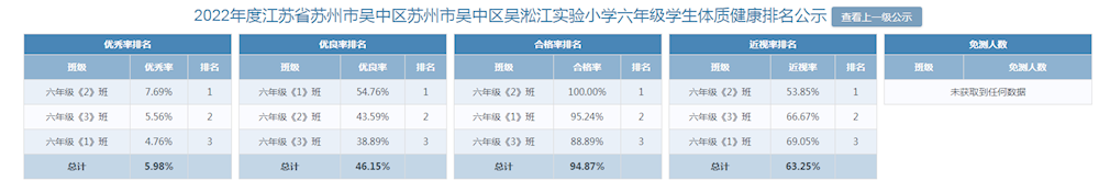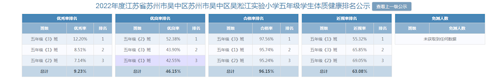 2022年吴淞江实验小学学生体质健康、近视率排名公示
